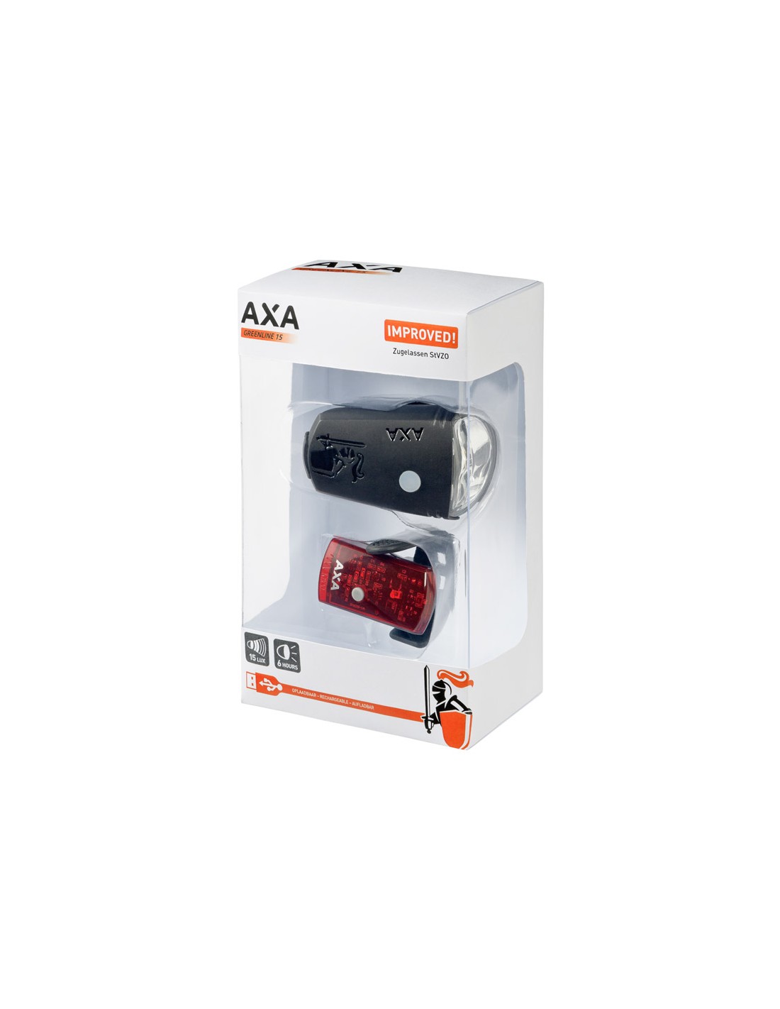 Stand 1 sorgt für maximale Akkulaufzeit und Stand 2 liefert optimale Lichtleistung. Sie können bis zu 7 Stunden Fahrspaß mit einem aufgeladenen Akku in weniger als 2 Stunden Ladezeit genießen. Mit einer Lebensdauer von 1000 Aufladungen bietet Greenline eine nachhaltige Alternative für die üblichen Batteriebeleuchtungen. Aufgrund von verbesserte leistungsstarken Lichtleistung von 35 luxstarken statt 30 luxstarken gut sichtbar von vorne und der Seite. Die Greenline garantiert den Betrieb bei Temperaturen zwischen -10 und +40 ° C, auch mit Regen und Schnee. Dieses Set beinhaltet einen 35 LUX Scheinwerfer sowie 1 LED Rücklichter. LICHTKEGEL: 55 Meter 'sehen' 3250 Meter 'gesehen werden' LICHT: 300 Meter 'gesehen' werden