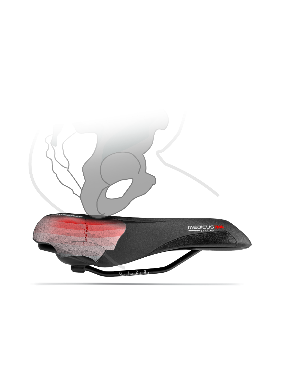 Das Ergebnis dieser innovativen Entwicklung ist ein neuer Satteltyp. Durch das Form & Funktion Concept werden alle Anforderungen an die verschiedenen Bewegungen in den verschiedenen Sitzpositionen gewährleistet